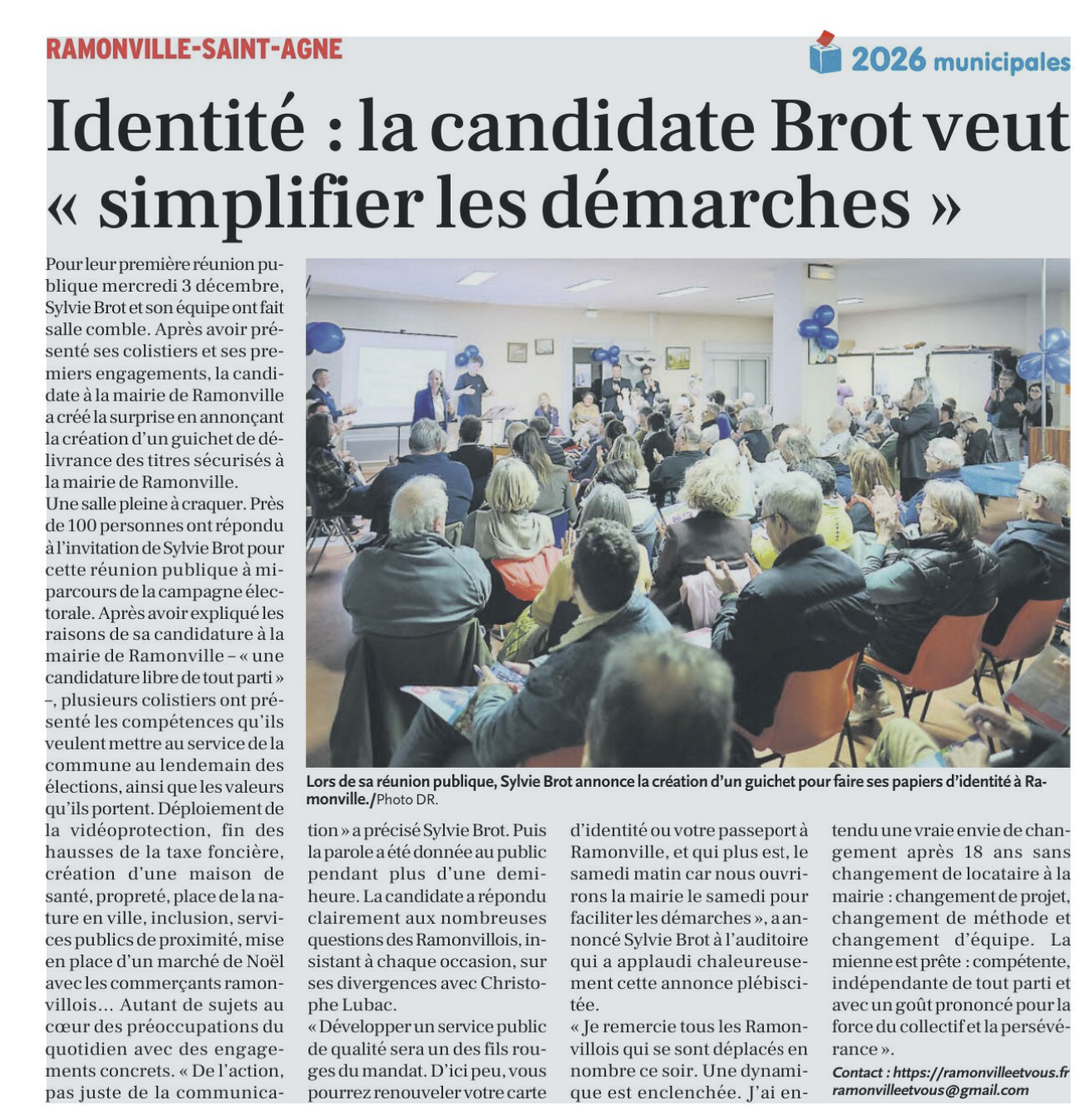 La Dépêche du Midi, 12 décembre 2025. https://www.ladepeche.fr/2025/12/10/identite-la-candidate-brot-veut-simplifier-les-demarches-13101493.php