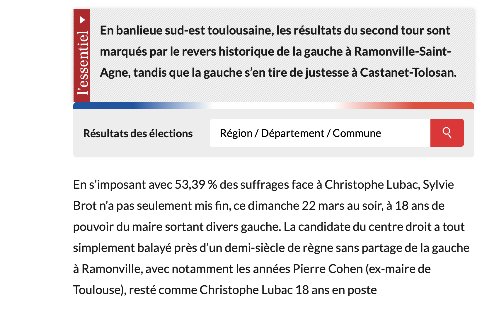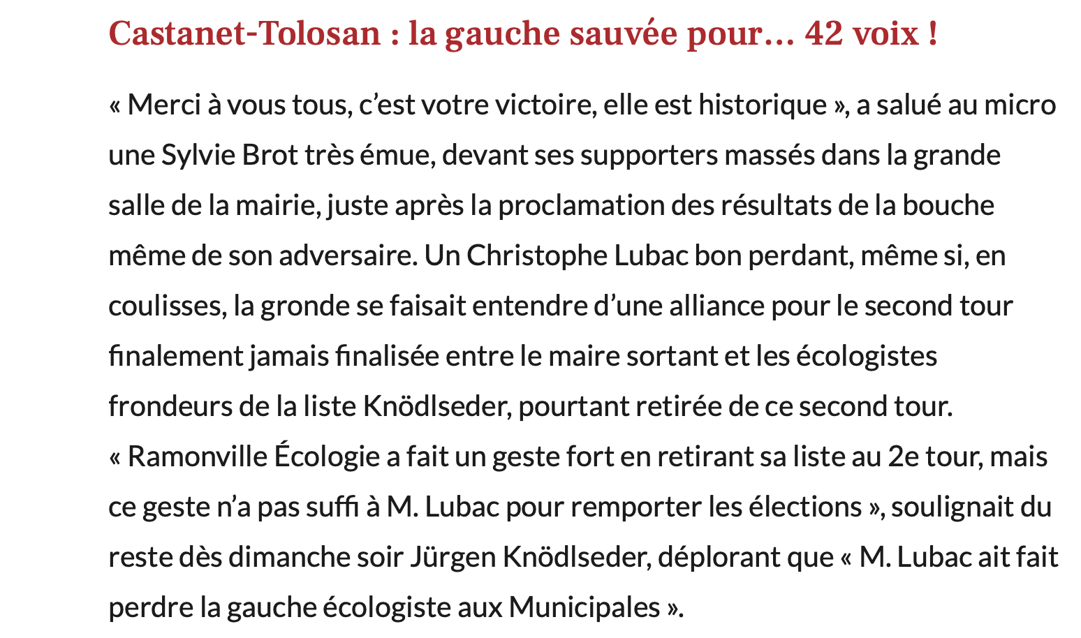 La Dépêche. Sylvie Brot met fin à près d’un demi-siècle de gauche à Ramonville-Saint-Agne