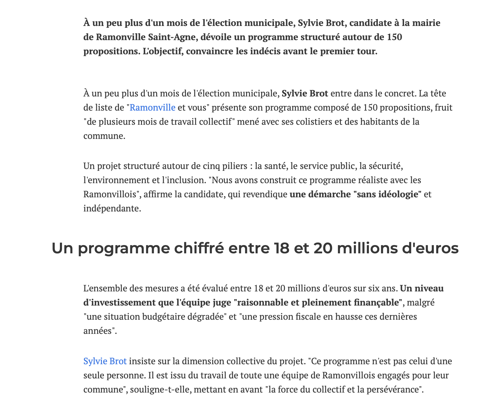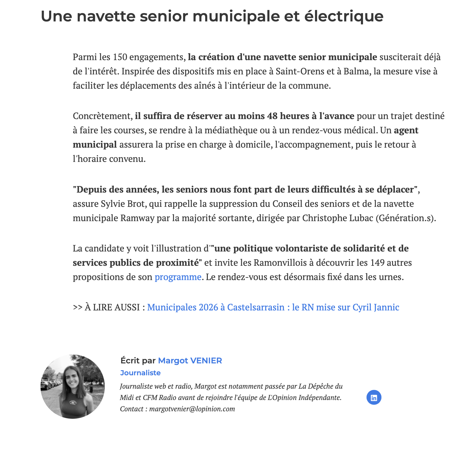 L’Opinion indépendante, 12 février 2026. https://lopinion.com/articles/politique/32392_municipales-2026-sylvie-brot-150-propositions-navette-seniors-ramonville-saint-agne